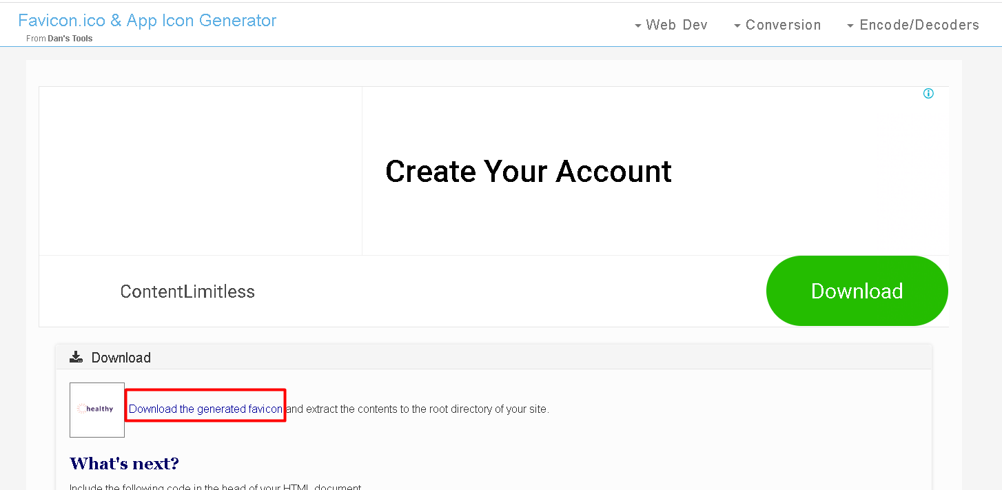 Download the generated favicon 클릭