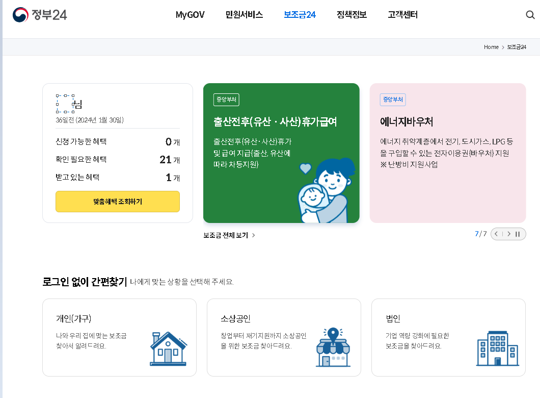 보조금24 | 정부24