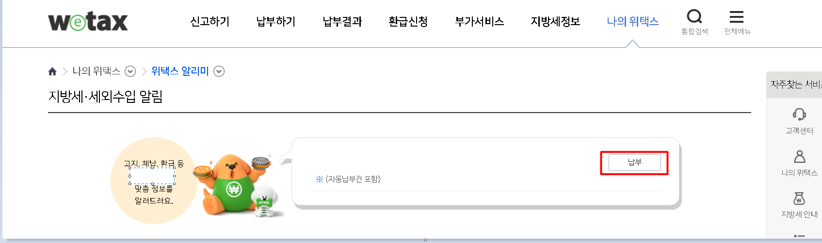 나의 위택스 클릭 > 납부 클릭