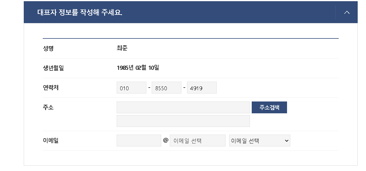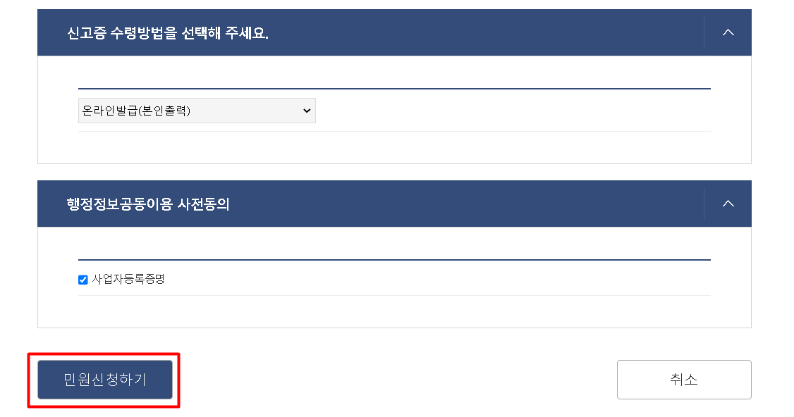 주소지는 반드시 사업자 등록장 상 주소지를 입력하여야 합니다. 관할 시군구에서 처리하기 때문에..