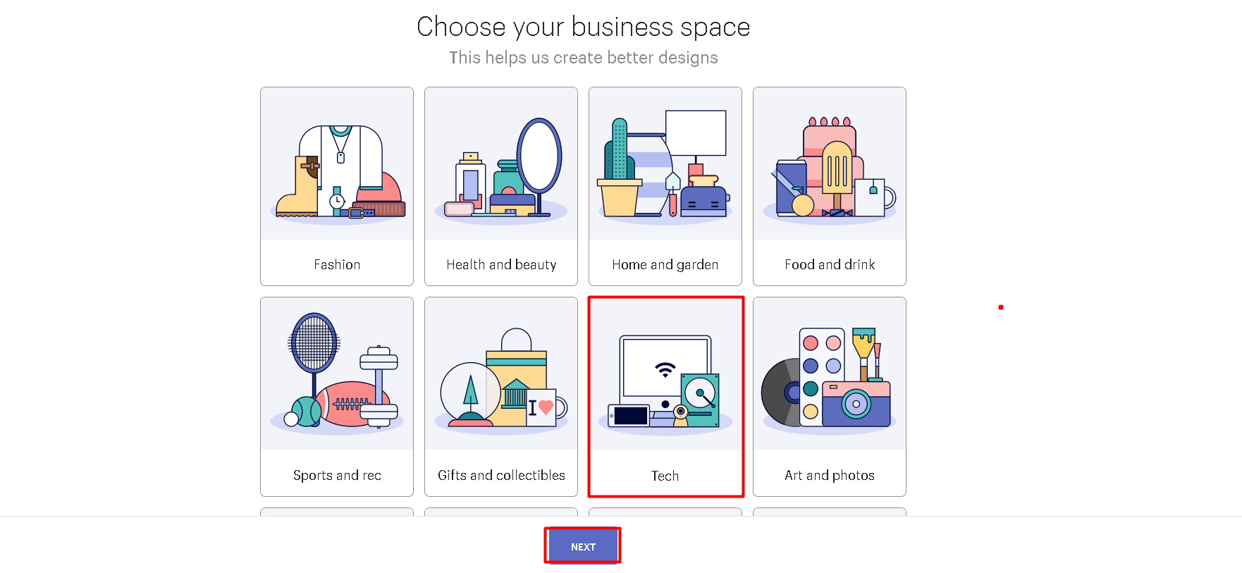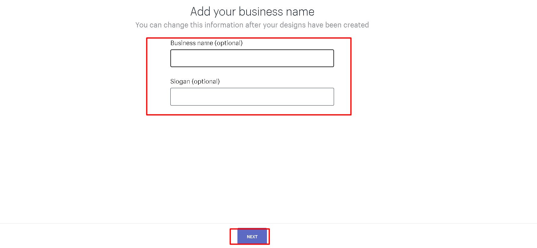 4. Business name 및 슬로건을 선택하고 Next 클릭