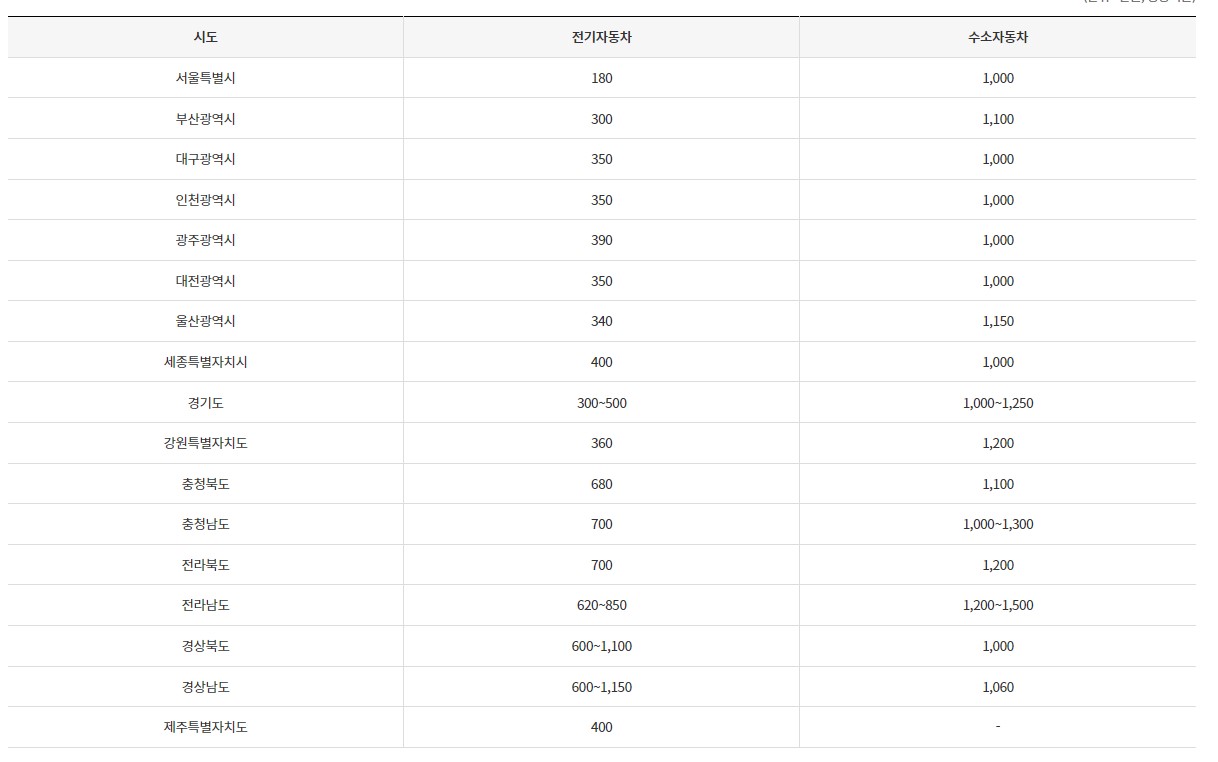 ✔ 전기차 : 580만원 → 550만원 (30만원 하락 )